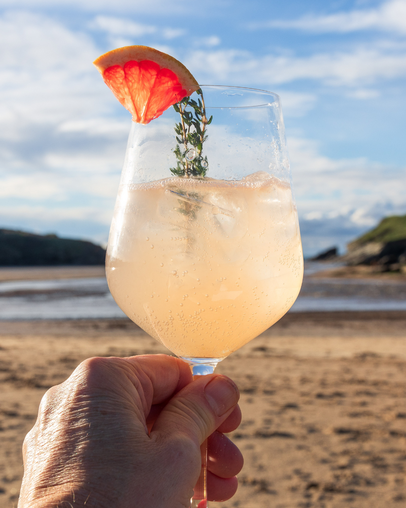 - GARNISH: Fresh Grapefruit Wedge & Thyme