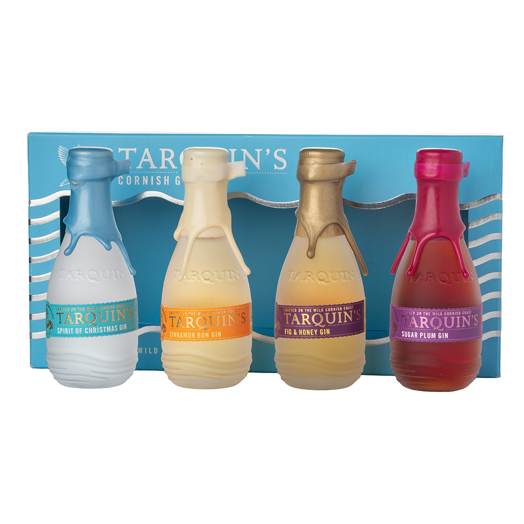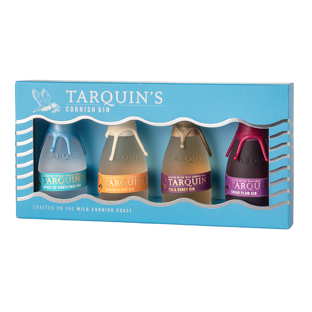 Our signature blue gift box containing four mini festive limited edition bottles, all lovingly handcrafted on the Wild Cornish Coast.